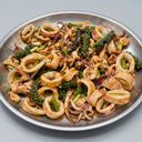 មឹកឆាជាមួយម្ទេស និងគ្រឿងទេសផ្សេងៗទៀត មានរសជាតិផ្អែម និងប្រៃបន្តិច