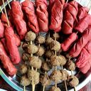 a dish made from ground meat that is rolled into a small ball, often with other ingredients like breadcrumbs, minced onions, eggs, and various seasonings.