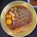 មីស្រូវសាលីសរសៃតូច ចម្អិនក្នុងទឹកស៊ុបហតផតដែលមានរសជាតិឈ្ងុយឆ្ងាញ់ជាមួយសាច់ និងបន្លែ