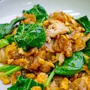 Flat rice noodles stir-fried with a savory and slightly sweet soy-based sauce (For ref only)