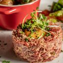 សាច់គោតាតាដិតជាមួយគ្រឿងទេស និងជីស្រស់ៗ