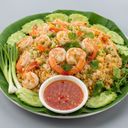 បាយឆាដោយប្រើកម្ដៅខ្លាំងជាមួយនឹងបន្លែឈ្ងុយឆ្ងាញ់ ព្រមទាំងមានស៊ុត ជាមួយគ្រឿងសមុទ្រ
