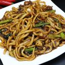 Stir-fried noodles with vegetables, spices, and a savory sauce, often topped with proteins. (For ref only)