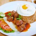 Cooked rice then fried with egg, vegetables, meat and comes along with juicy, tender stir-fried meat