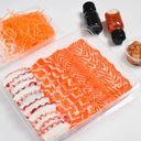 ត្រីសាលម៉ុន០.១២៥គីឡូក្រាម ពងត្រីនីសុីន០.១២៥គីឡូក្រាម ត្រីធូណា០.១២៥គីឡូក្រាម មឹកយក្ស០.១២៥គីឡូក្រាម និងលៀសអាទិច០.១០០គីឡូក្រាម