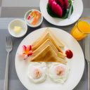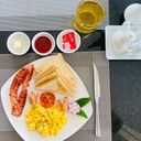 Fluffy eggs filled with colorful vegetables, seasoned to perfection, creating a nutritious breakfast delight. (For ref only)