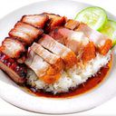 Crispy pork belly paired with warm rice and sweet-savory sauce