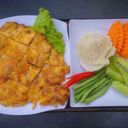 សាច់មាន់ប្រឡាក់អាំង ហើយមកជាមួយបាយក្ដៅៗ