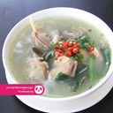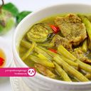 ស៊ុបហិរៗដែលមានក្លិនស្លឹកគ្រៃ និងស្លឹកក្រូចសើច និងរំដេងបន្ថែមជាមួយគ្រឿងសមុទ្រ