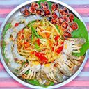 ល្ហុង គ្រឿងសមុទ្ររួម និងបន្លែលាយជាមួយគ្រឿងផ្សំពិសេសដែលមានរសជាតិប្រៃ ផ្អែម
