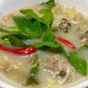 ម្ហូបដែលធ្វើពីសាច់មាន់ ត្រូវបានស្ងោរជាមួយគ្រឿងផ្សំឈ្ងុយ ដូចជា ម្ទេស ខ្ទឹម និងស៊ុបឆ្លាស់ ផ្តល់ឱ្យមានរសជាតិទន់ ជូរ និងឆ្ងាញ់ សមស្របសម្រាប់ពិសារជាមួយបាយ ឬសាឡាដ